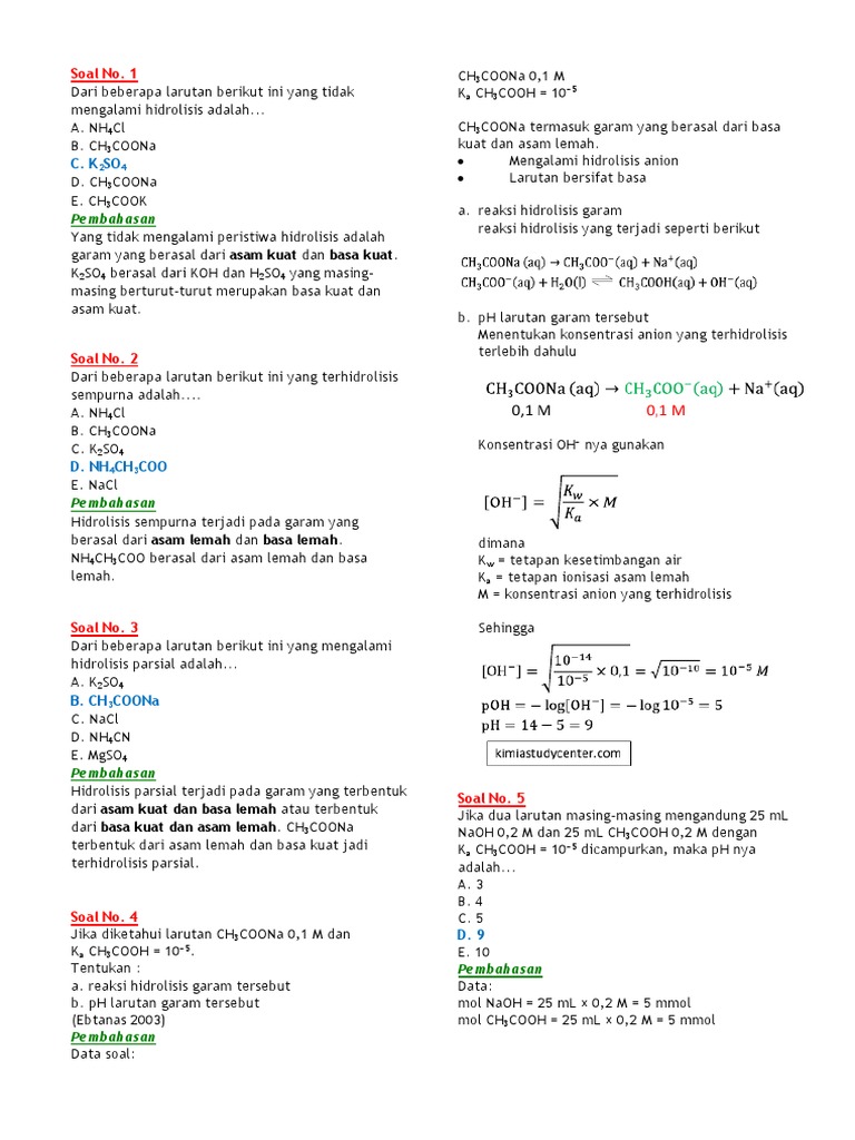 Soal Dan Pembahasan Hidrolisis Kelas 11 - 11 Contoh Soal Hidrolisis Garam Asam Lemah Dan Basa Lemah Contoh Soal Terbaru : Objek yang tidak lagi dianggap dibutuhkan oleh komunitas atau objek yang dibuang karena dianggap tidak berharga.. Hidrolisis berasal dari kata hidro yang berarti air dan lisis yang berarti pengurain. Objek yang tidak lagi dianggap dibutuhkan oleh komunitas atau objek yang dibuang karena dianggap tidak berharga. Tetapan hidrolisis (kh) dari suatu garam yang berasal dari asam lemah dan basa lemah dirumuskan …. Rangkuman materi disertai contoh soal hidrolisis untuk kelas 11 dan jawaban berikut video pembelajaran video pembelajaran hidrolisis kelas xi. Barium klorida b.ammonium karbonat c.