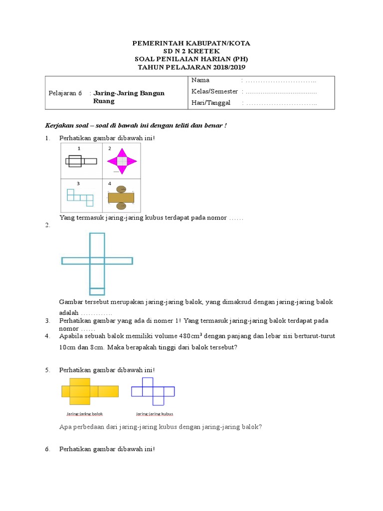 Check spelling or type a new query. Soal jaring jaring kubus dan balok kelas 5 sd pdf. Maybe you would like to learn more about one of these? We did not find results for: